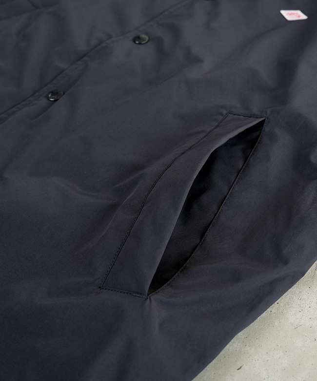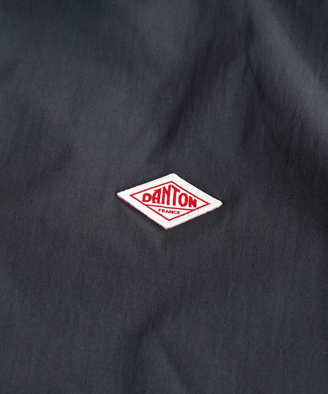 ・DANTON刻印入りのドット釦と裾の配色コードが特徴