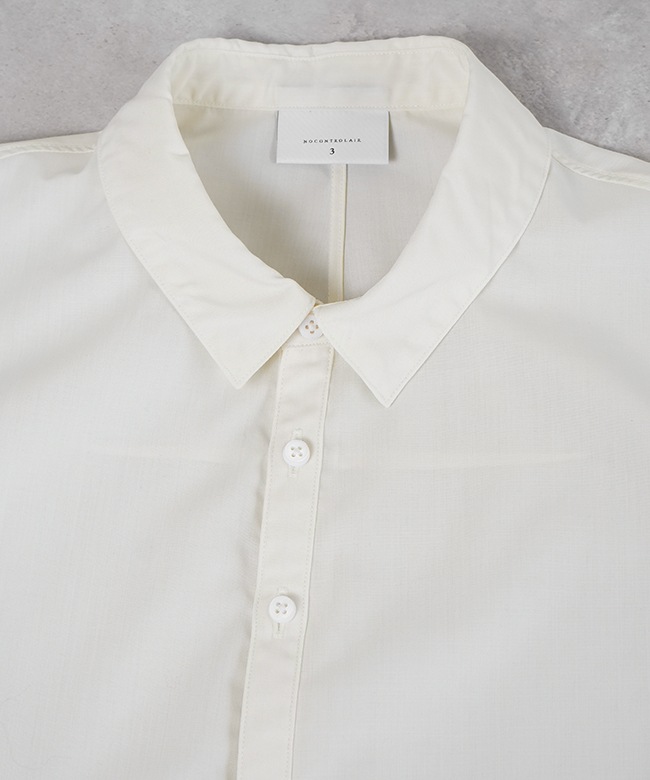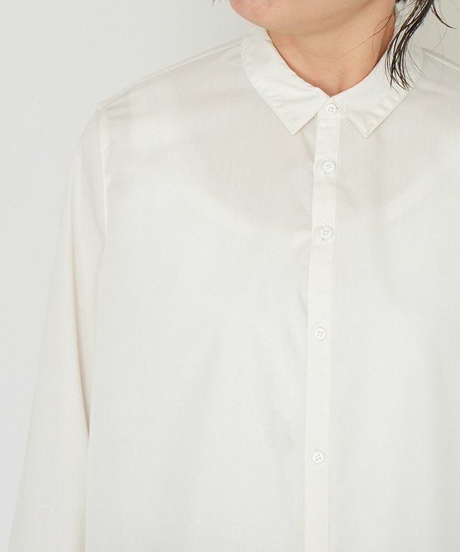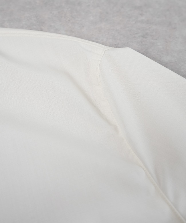 ・経糸緯糸共に50番単糸のポリエステルとレーヨンの混紡コンパクト糸を使用して平織で織ったブロード生地。