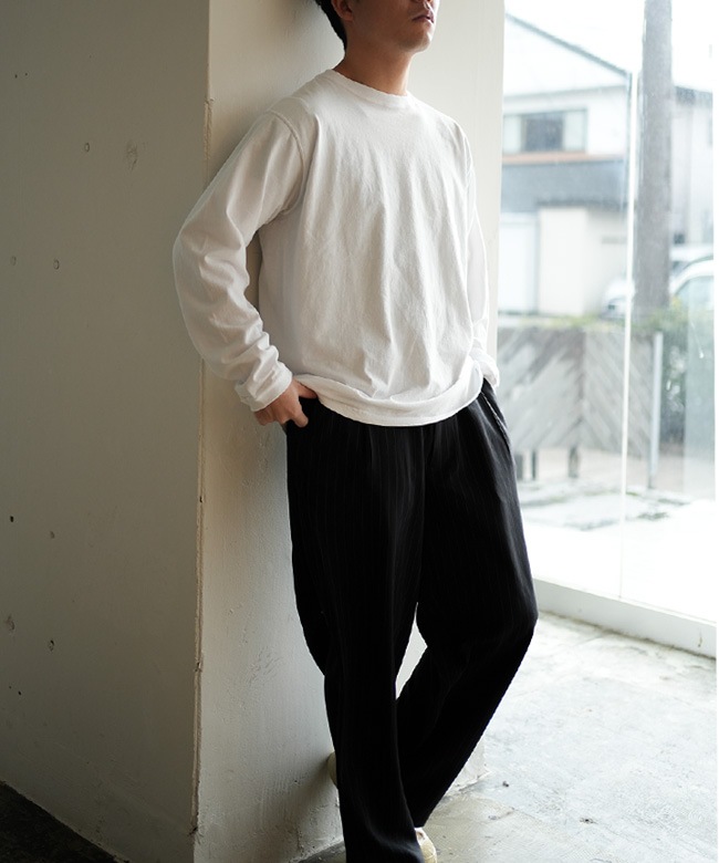・日本の気候に最適で、インナー/アウター兼用で着回しやすく汎用性の高い生地(5.5oz ジャージー)、日本人の体型に最適なサイズスペック、安心して洗濯を繰り返すことのできるしっかりとした縫製で、毎日快適に愛用することができます。