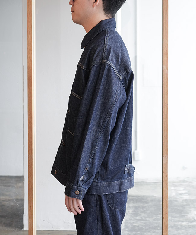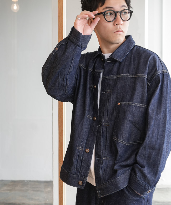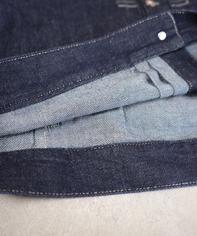 ・“1st”と呼ばれるヴィンテージデニムジャケットのディティールを採用しつつ、GO HEMP流にアレンジを効かせています。