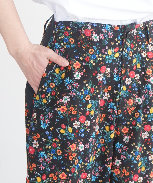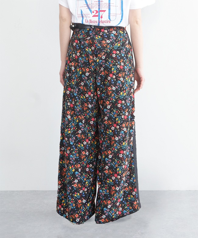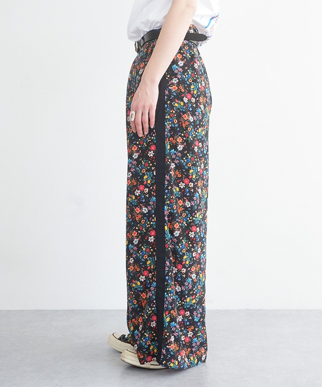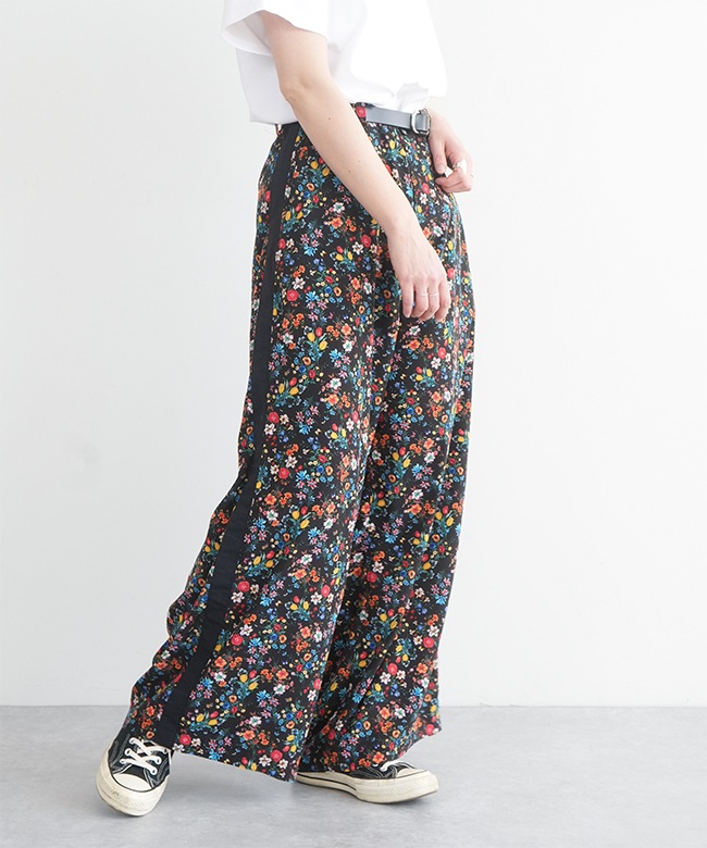 カラフルな小花柄がかわいいワイドパンツ。