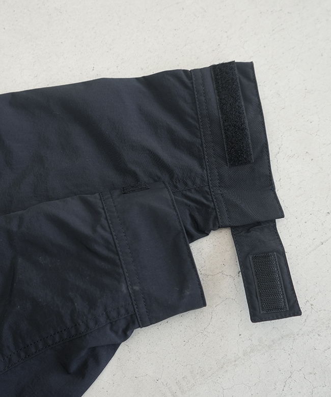 ・裾は両脇のアジャスターで簡単に調節可能。フロントフラップはドットボタン仕様です。