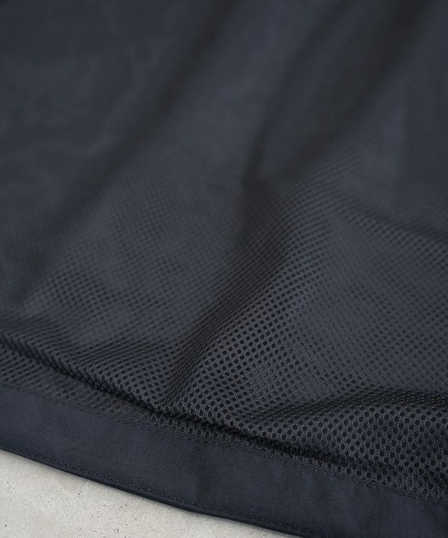 ・裏地は肌離れのよいポリエステルメッシュで、生地が汗で張りつくのを抑えます。