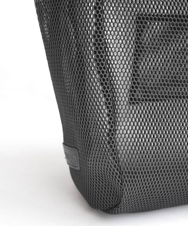 ・表生地はクッション性のあるダブルサイドメッシュを使用しており、中の荷物を守ってくれます。