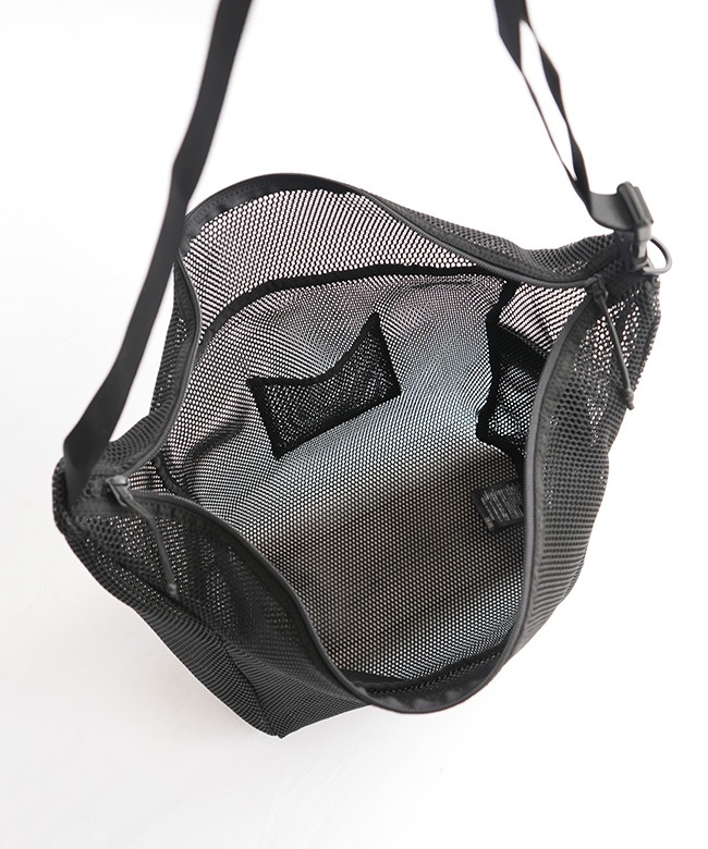 メッシュ素材のショルダーBAGを着こなしのポイントに。