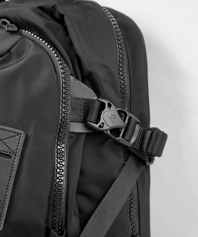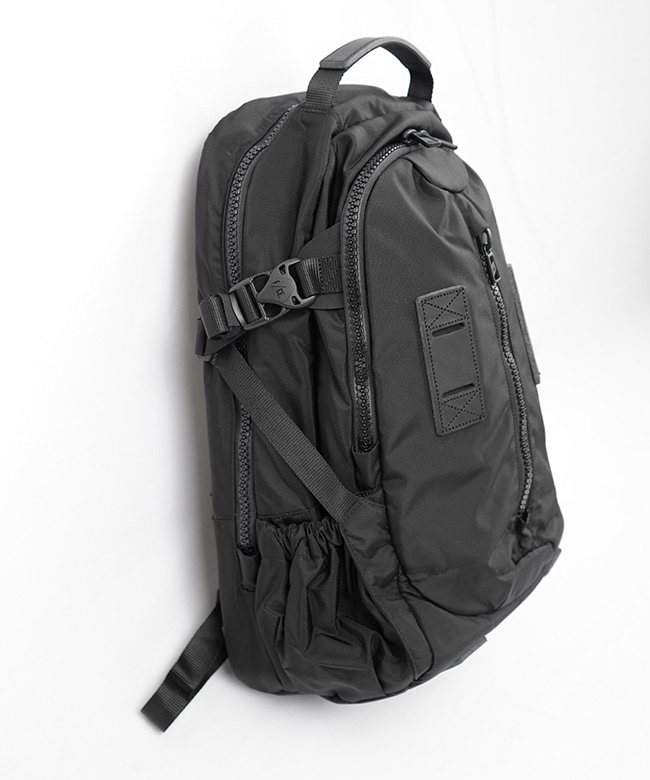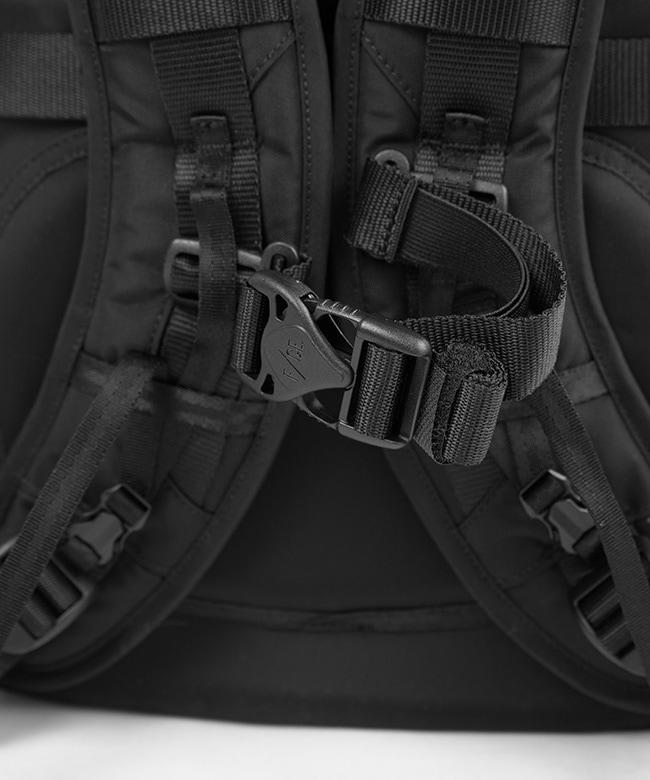 ショルダーにはサコシュや、ポーチなど取り付けられるMOUNTING T SYSTEMを搭載。1泊2日用の旅を想定し設計された33L のデイパックです。