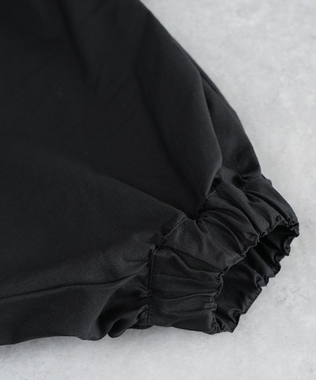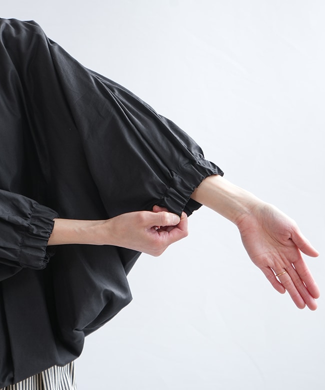 ・袖と裾に太めのゴムリブを施し、ブラウジングすることでシルエットの変化を楽しめます。