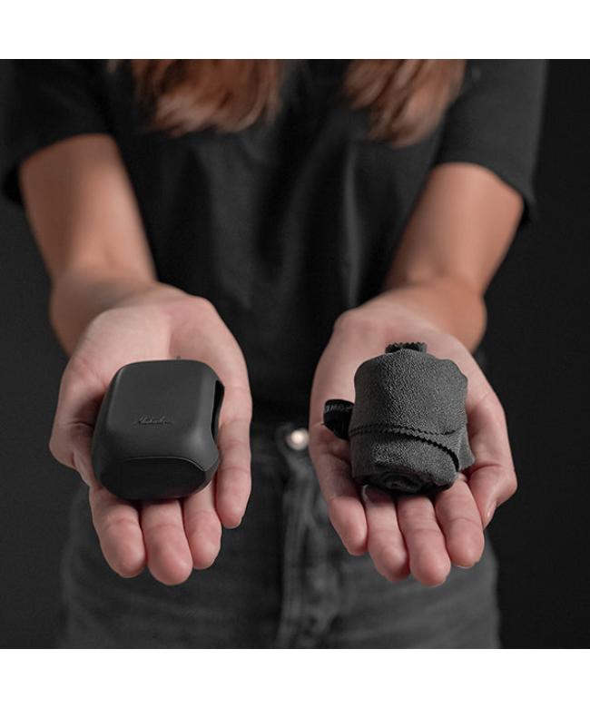 ・サイズ:39cm×39cm ・重量:34g ・素材:ナノファイバーマテリアル、シリコーントラベルケース |