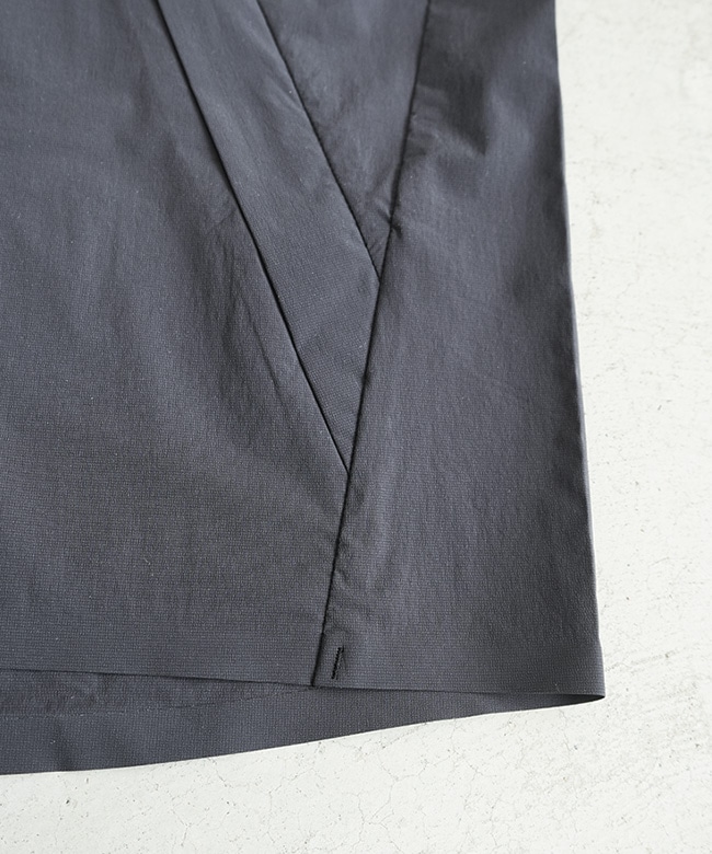・切りっぱなしでもほつれにくい特殊な生地特性を生かし、ミニマルにそぎ落とした無駄のないデザインで快適な着心地を追求。