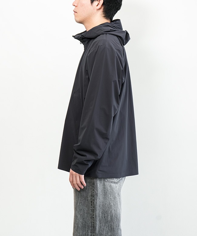 ・特殊な技術により生まれた織物のフリーカット素材を採用し、ストレッチ性と軽量性に秀でたフーディージャケット。