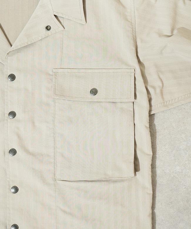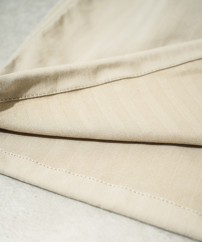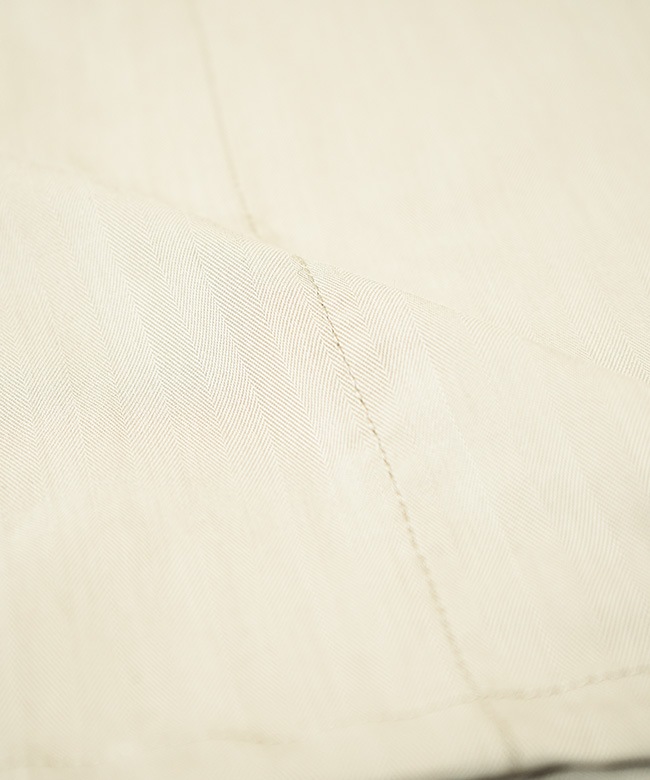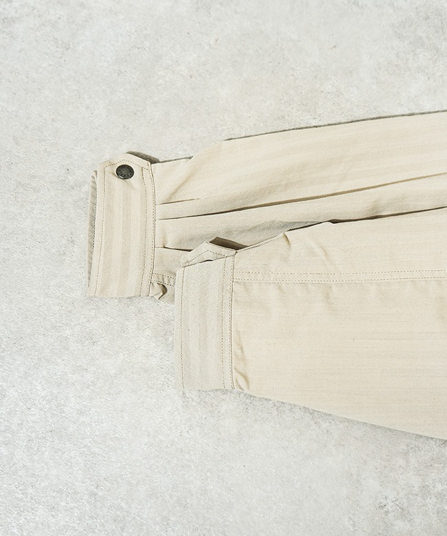 ・ミリタリーウエアに使用されていたヘリンボーン生地をベースに軽量化を図り、耐摩耗性、染色堅牢性をアップデートした素材を使用しています。