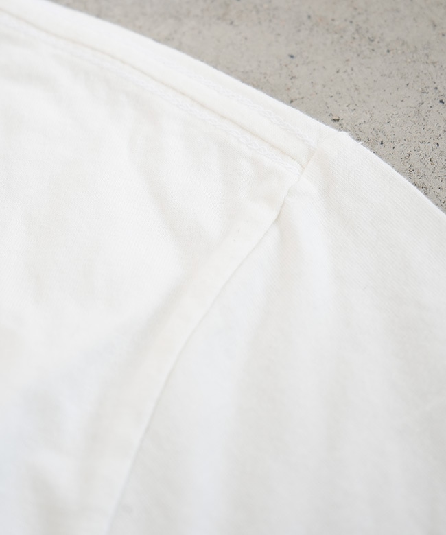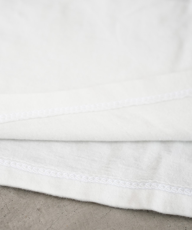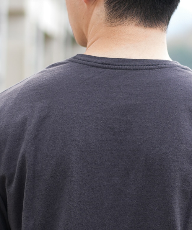 ・リブニットの襟ぐりとテープ処理された肩の縫い目により形くずれしにくく快適な着心地とフィット感