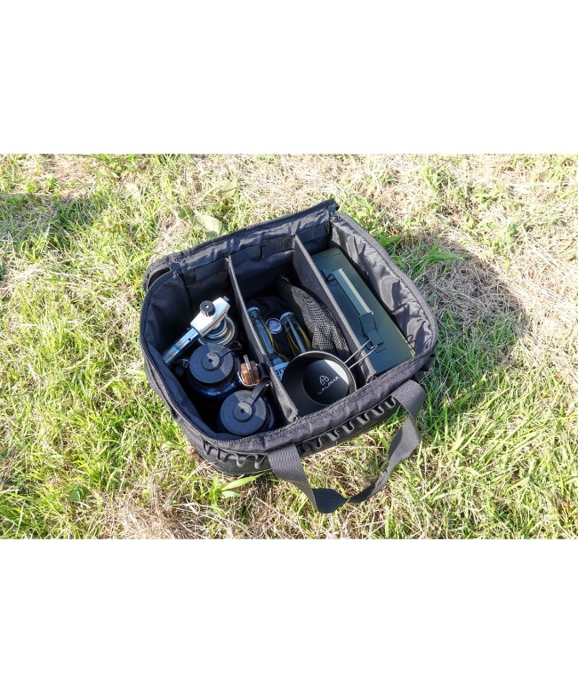 全面保護パッド入りなのでキャンプ道具のほか、カメラ等のギアもしっかり保護します。