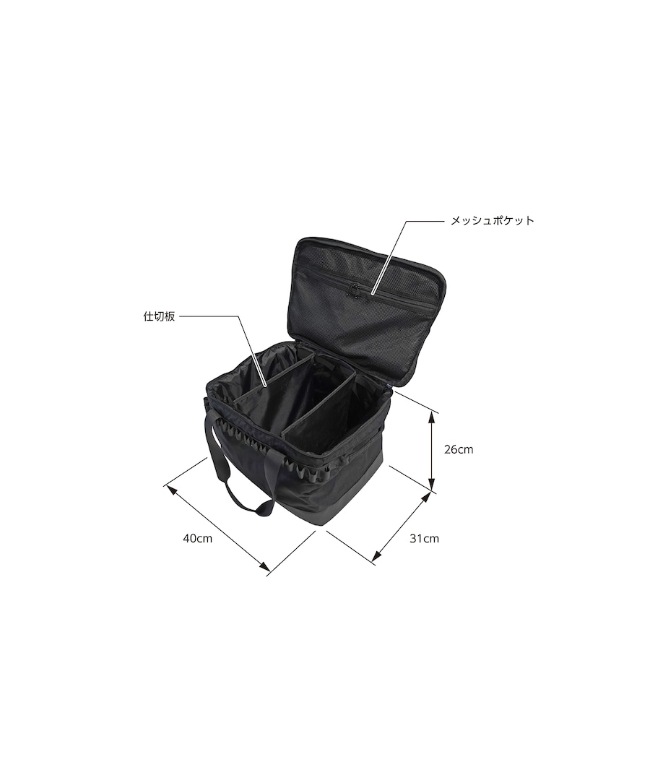 | SPEC | サイズ:400mm×310mm×260mm(H) 材質:本体ポリエステル、底部ターポリン 重量:850g MADE IN CHINA |