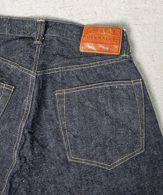 ・goldオリジナルの「落ち綿スビンコットンデニム」を使用したデニムパンツ。