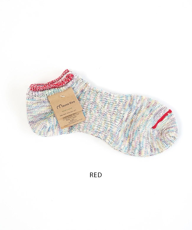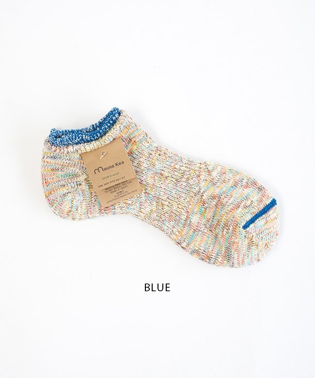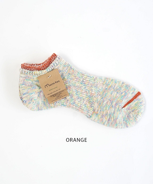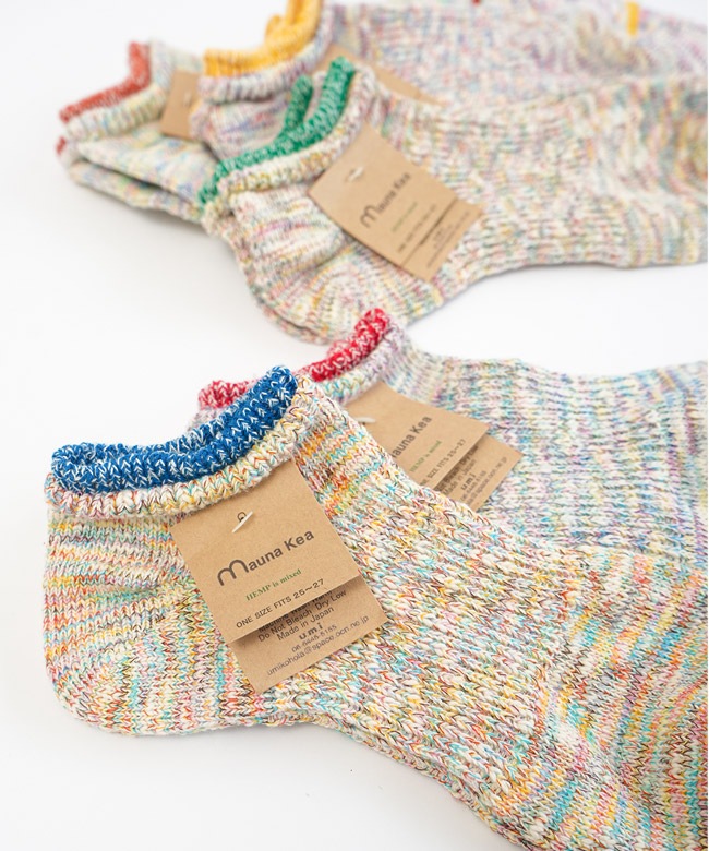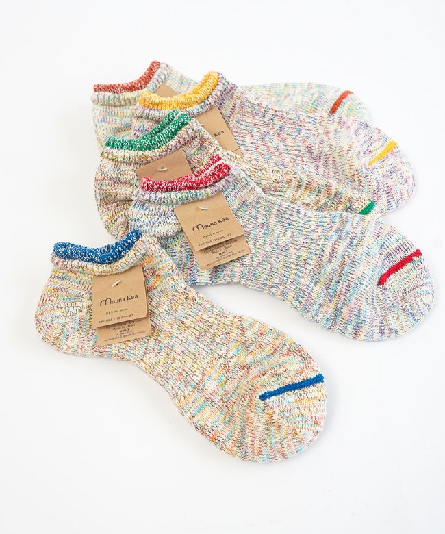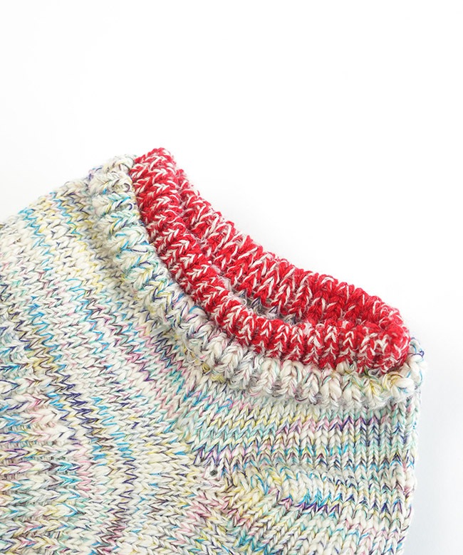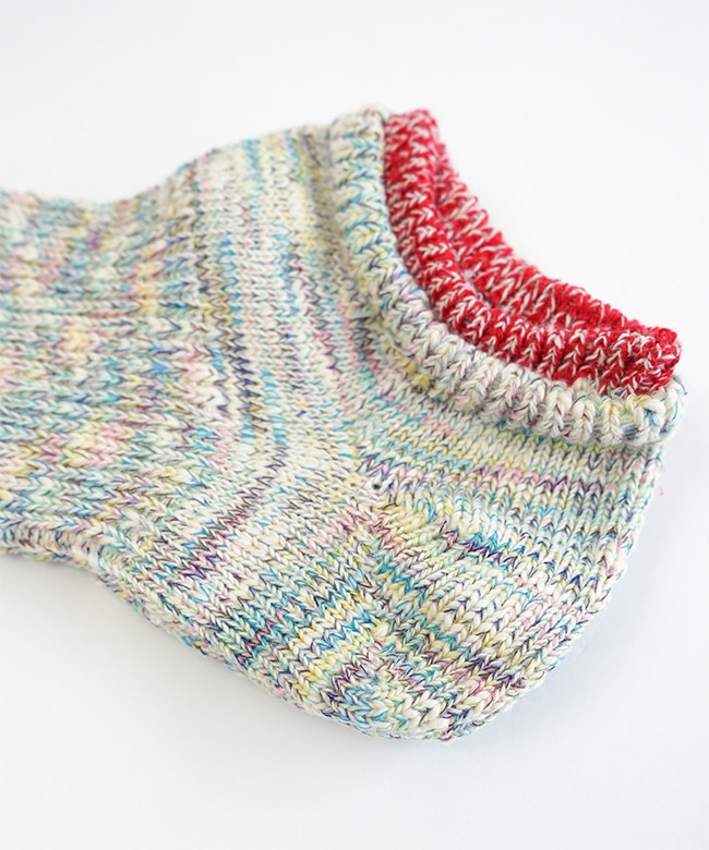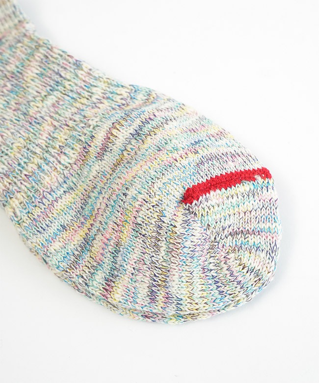 ・各カラー異なるミックスカラーの糸を使い編み上げており、リブとつま先のカラーラインが目を惹くアイテムです。