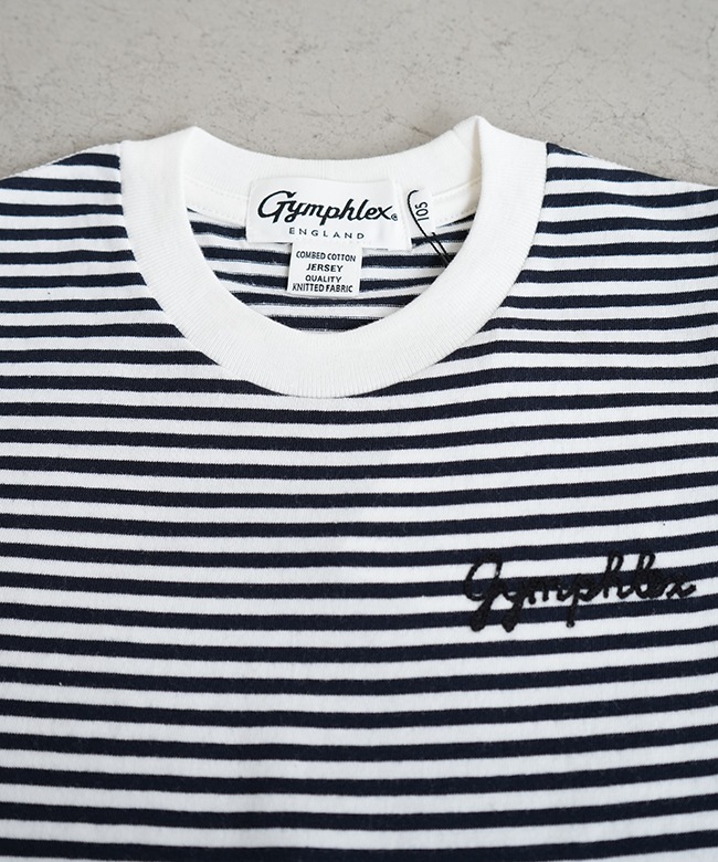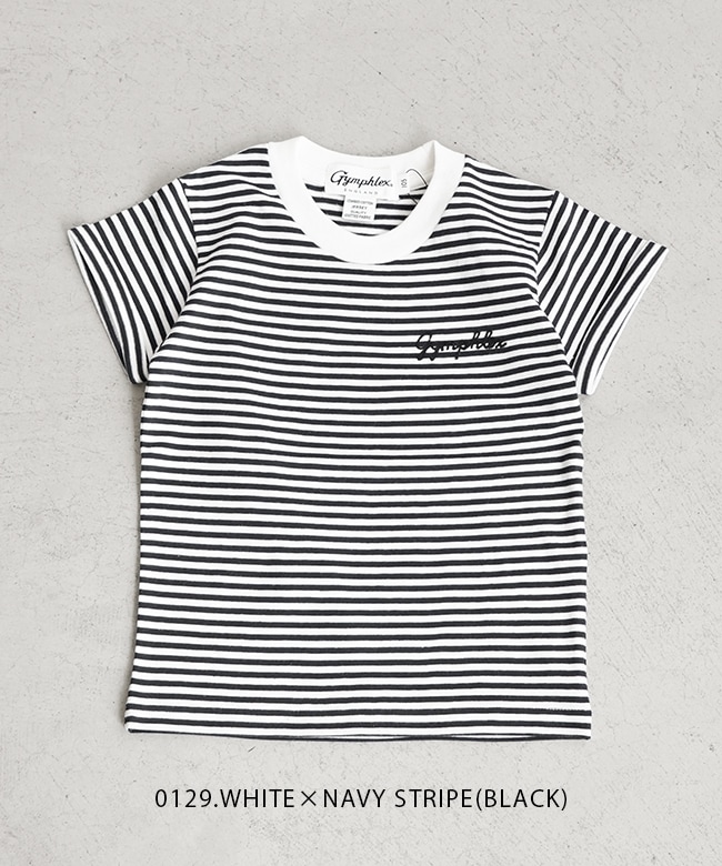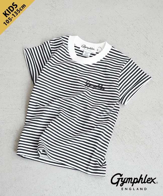 【SALE 50%OFF】[GY-C0458COM]Gymphlex(ジムフレックス) キッズ クルーネックストライプ半袖プルオーバー ボーダー柄 105 115 125 135サイズ[25pr]