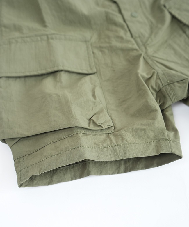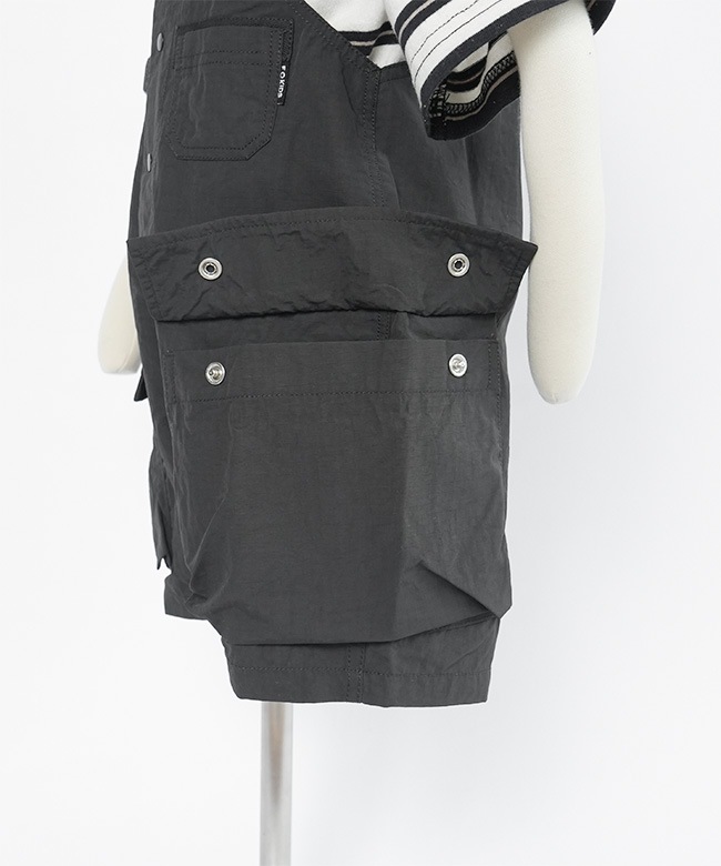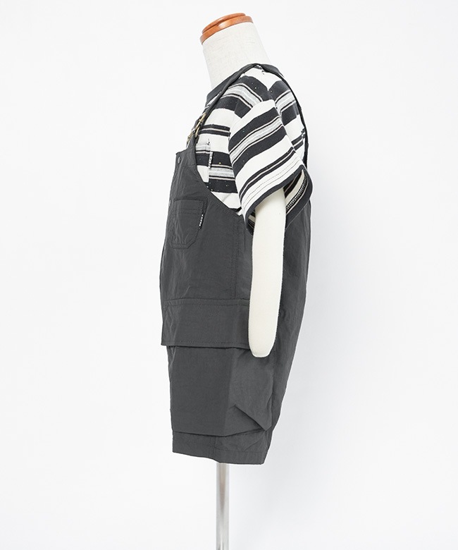 ・サラッと軽いリップストップ素材を使用したショート丈オーバーオール。