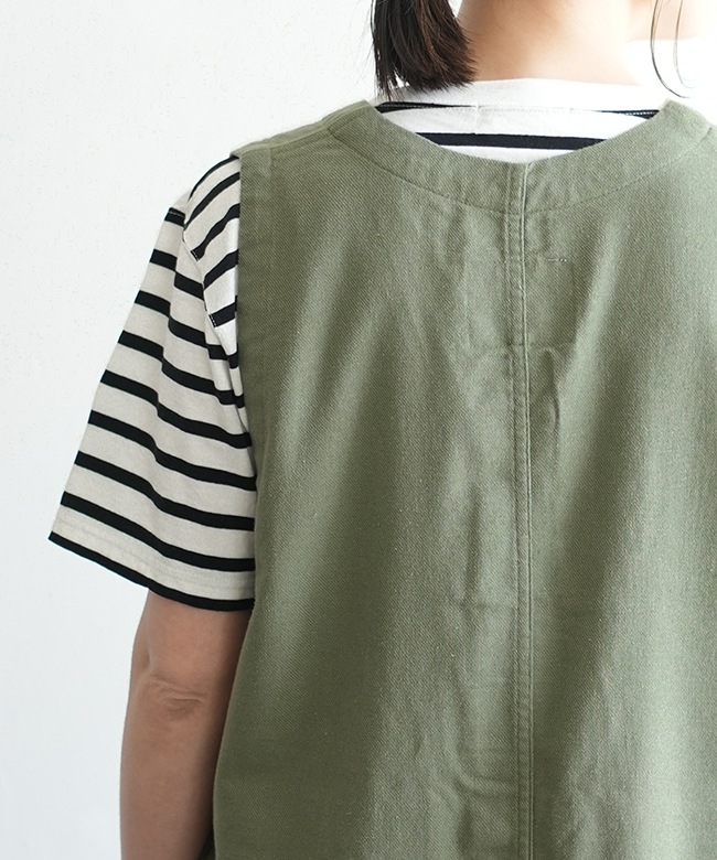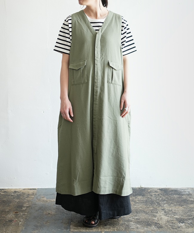 ・ジレとしての使用はもちろんですが、ボタンを閉じてワンピース風にも着られますので着こなしが楽しめますね。