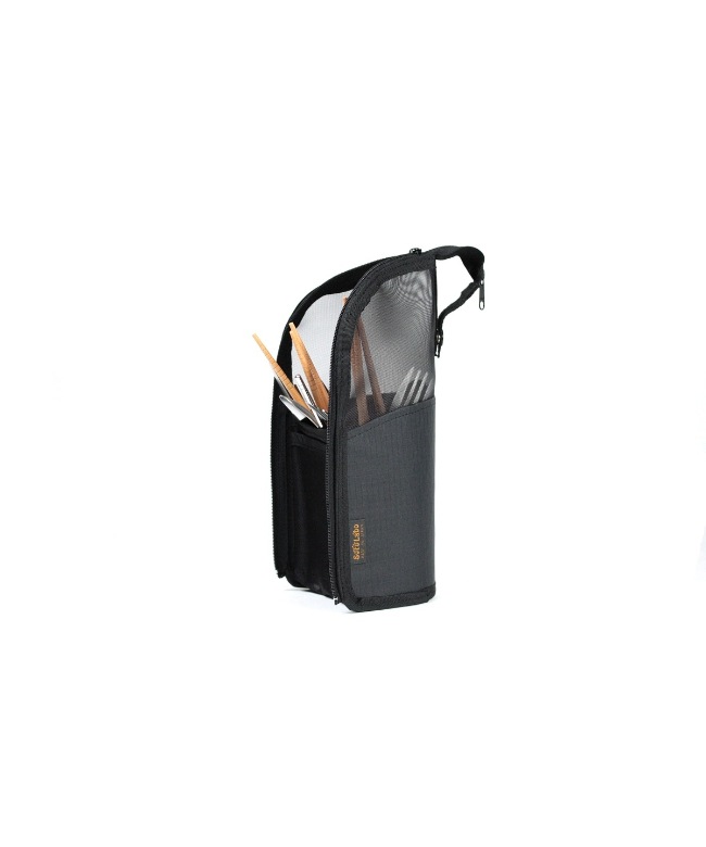 素材は、ボディ部分にXpacと中には自立するように芯材を入れ、それ以外の、上部・底面と極限まで細かいメッシュで虫や埃の侵入を防ぎ、水が溜まらないので、洗って濡れた状態で入れてどこかに吊下げておけば、乾くという機能的かつStylishなケースです。
