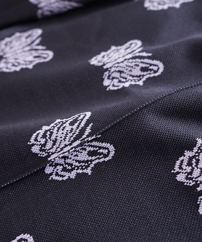 ・今回NEEDLESのために描き下ろした"パピヨン"のイラストや、キャラクターのモチーフで特徴的な"瞳"を融合したオリジナルファブリック。・ブランドの定番である柔らかなポリエステルジャージー素材を使用。