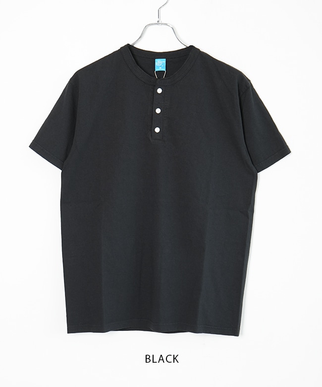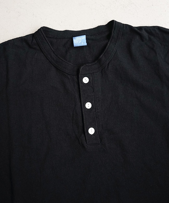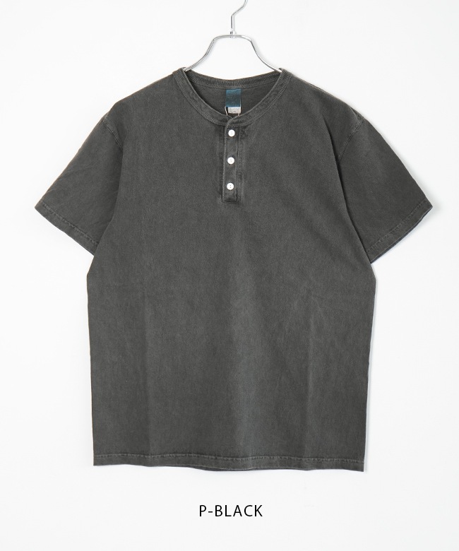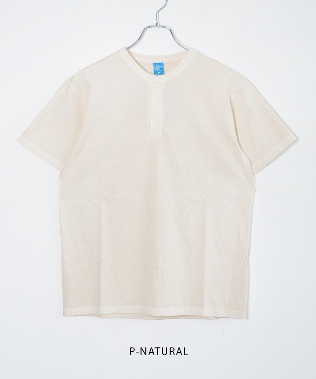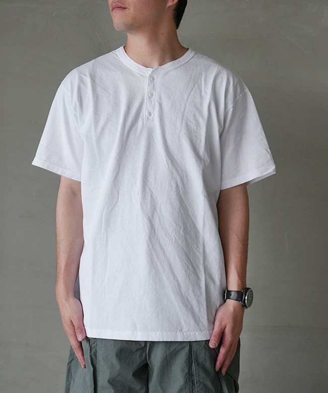 ・シンプルでラフな仕上がりのヘンリーネックTシャツ。