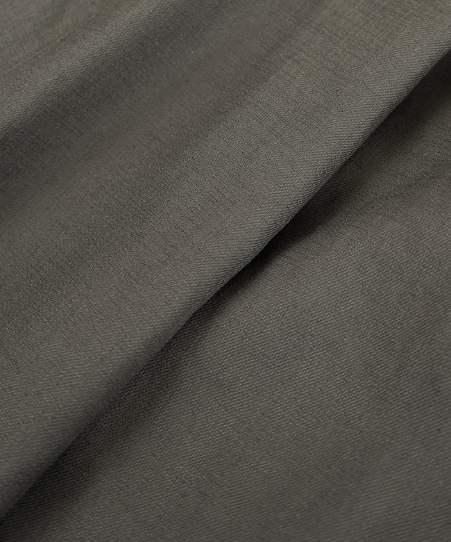 ・スラブ糸のトリアセテートにモノフィラメント糸を織り交ぜたハイブリッドなツイル生地は、見た目に涼やかで、大きなシワや縮みが出にくく扱いやすいのが魅力。