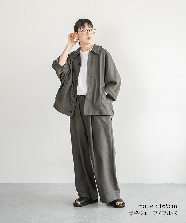 ・ほんのり麻のような風合いながら、しっかりとしたハリ感があり、ラフになりすぎず“きちんと見え”も叶えてくれます。