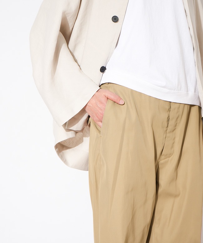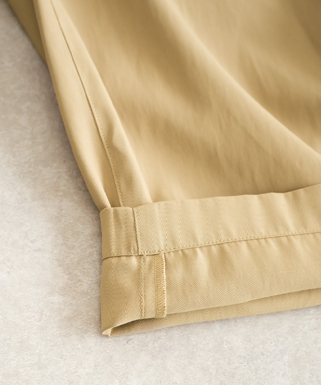 ・落ち感がありながら、製品洗いを施すことで綿のナチュラルな風合いも併せ持ちます。
