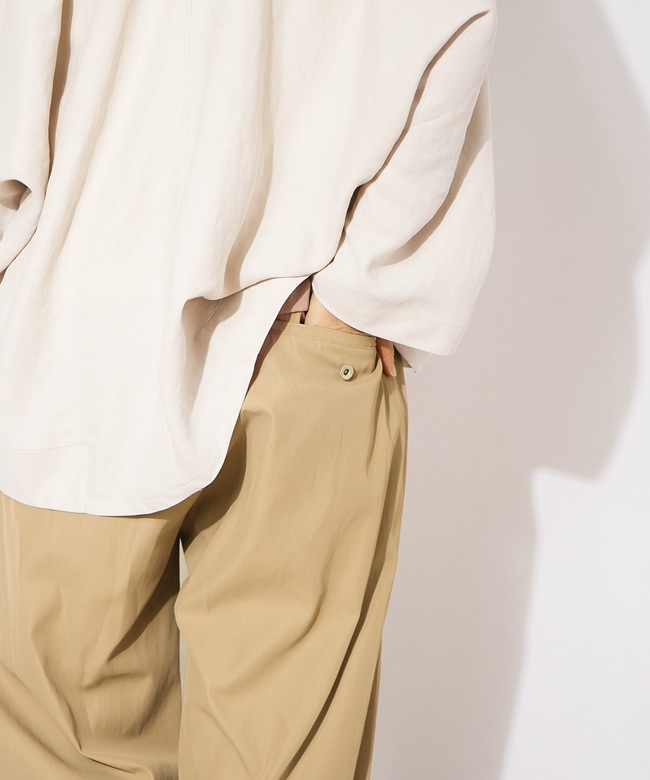 透け感:なし / 伸縮性:なし / 裏地:なし ・この製品はナチュラルな風合いにこだわる為、製品縫製後に洗い加工を施しています。 その為、歪みやシワが見受けられ、同じサイズ内でも個体差が生じる場合もございます。 製品の特性として、予めご理解・ご了承くださいませ。 ※屋外(太陽光)と、室内(蛍光灯)とでは色の見え方には違いがございます。 ご使用のモニターや環境によっても色の見え方が異なりますことをご理解ご了承くださいませ。 |