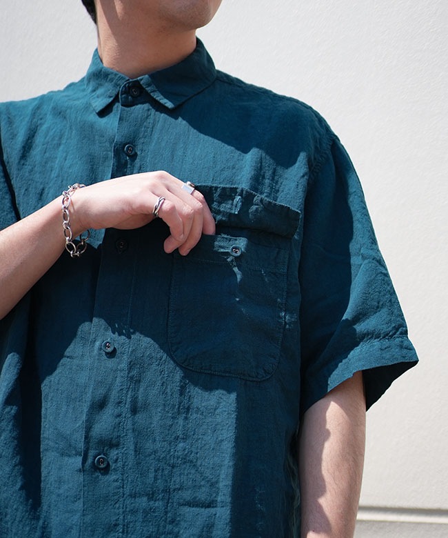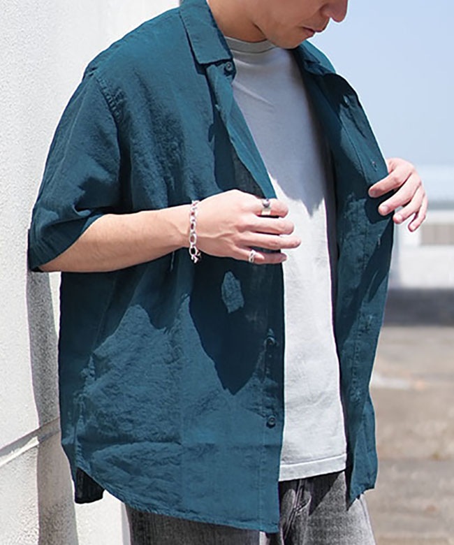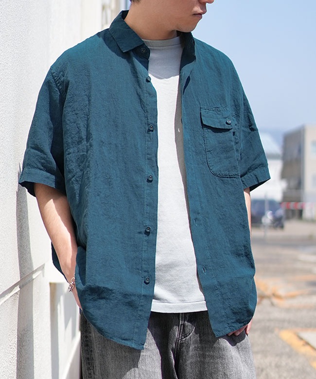 ・清涼感のある上質なリネン素材により、ゆったりとしたフォルムながら上品感が漂う半袖シャツ。