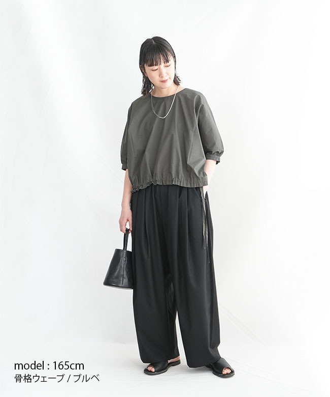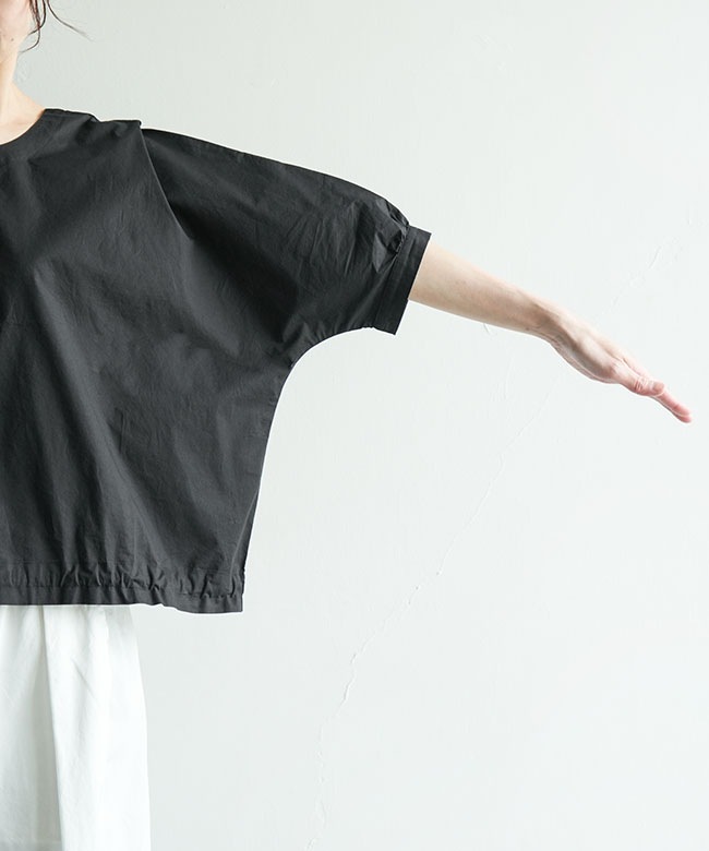 ・肘が出ない丈感のドルマンスリーブ。気になる部分を隠しつつも涼しく着られる、絶妙な袖に仕上がりました。