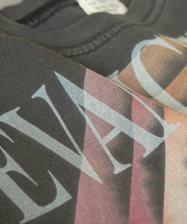 ・大胆なキャラクタープリントが目を引くデザインながら、製品染めによる味のある風合いが、日常のコーディネートにも自然と馴染みます。