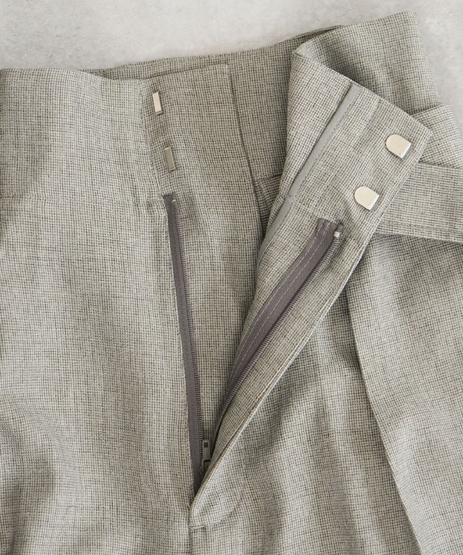 ・暑い季節もさらっと穿きやすいドライなタッチ。裏地なしでも透けない、程よい厚みです。