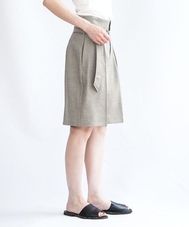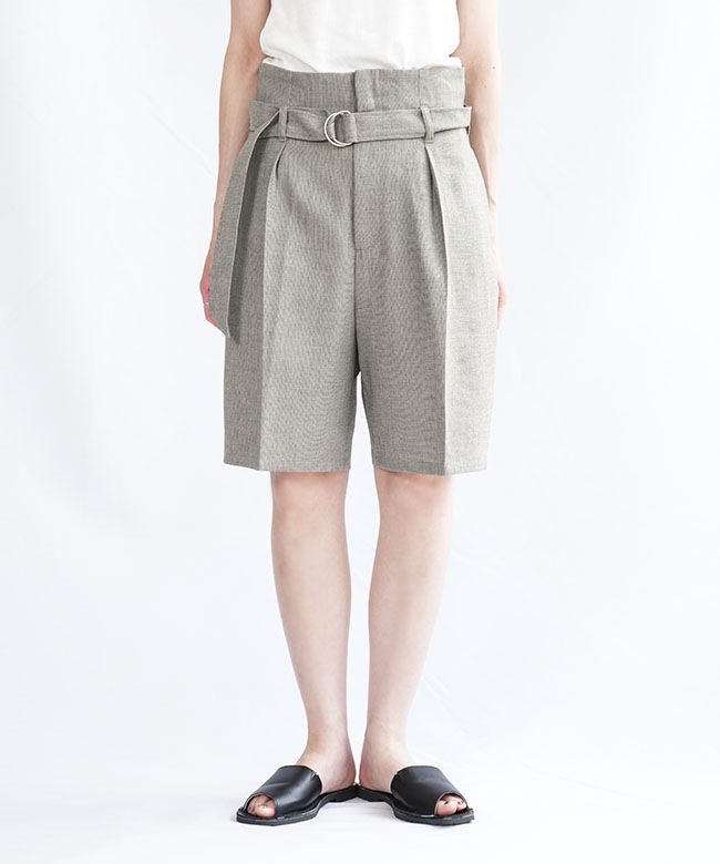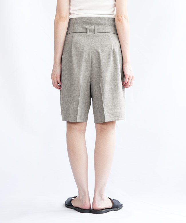 ・ハイウエストデザインにタックでシェイプを入れ、女性らしいシルエットに仕上げたハーフパンツ。