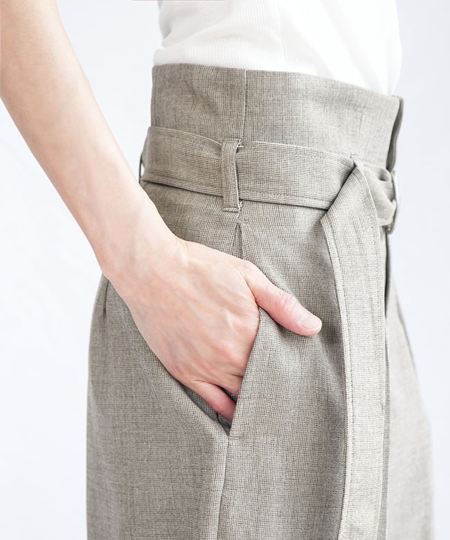 ・ゆとりのあるウエストを共布のベルトで締めることで、すっきりと着こなしていただけます。