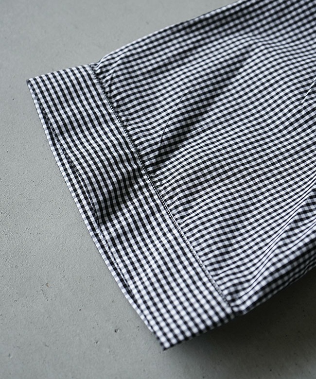 ・袖口のさりげない切り替えや胸ポケット、両サイドのシームポケットなど、シンプルながらもディテールにこだわりが感じられる仕上がりに。