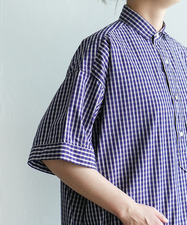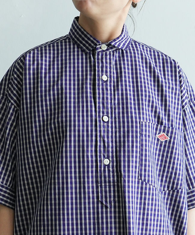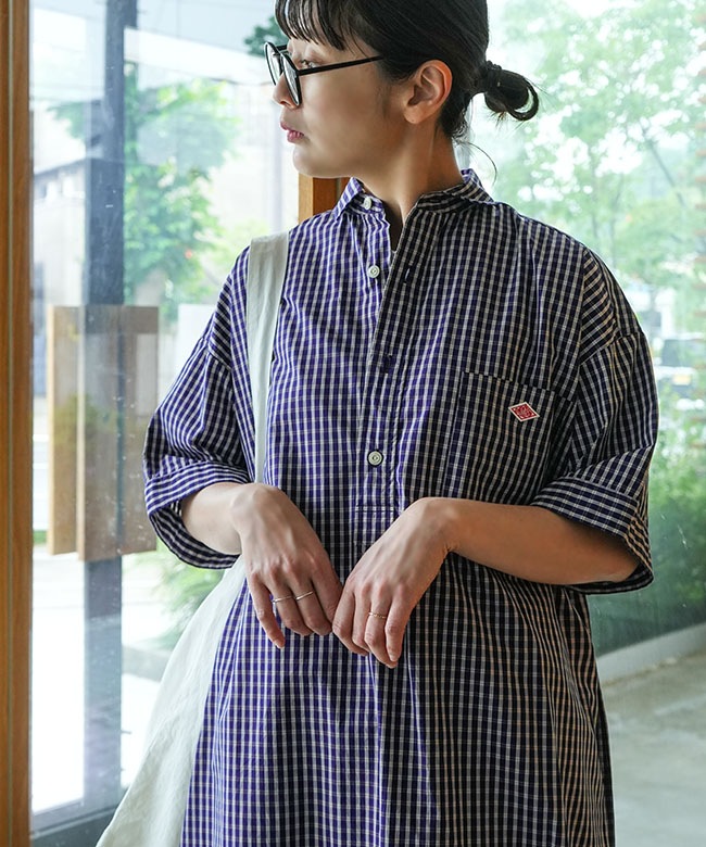 ・小さめの襟とゆったりとしたシルエットが特徴的な、ワークシャツをモチーフにしたDANTONのプルオーバーワンピース。