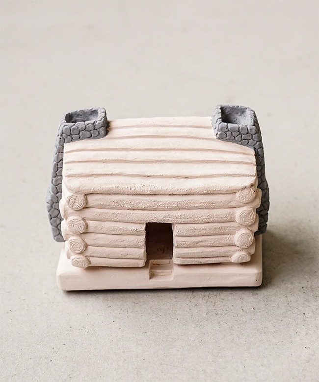 ナチュラルなお香と、ユニークなログキャビン型の香炉がセットになった商品