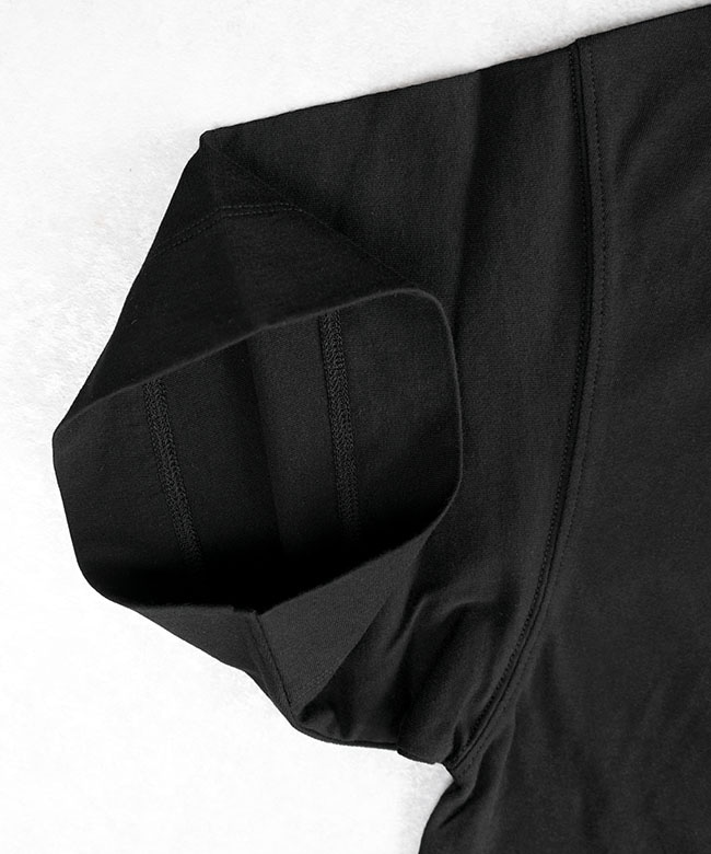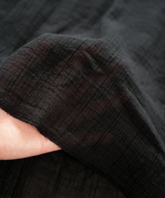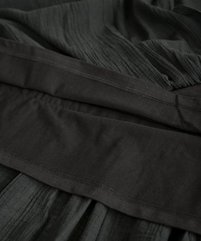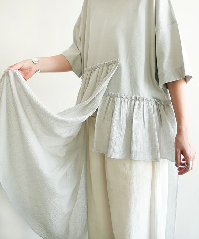 ・表面に凹凸を持たせた透け感のあるコットンウェービーボイルとソフトな風合いのコットン天竺、2種類のコットン素材を使用。