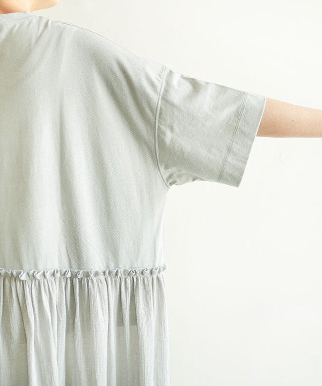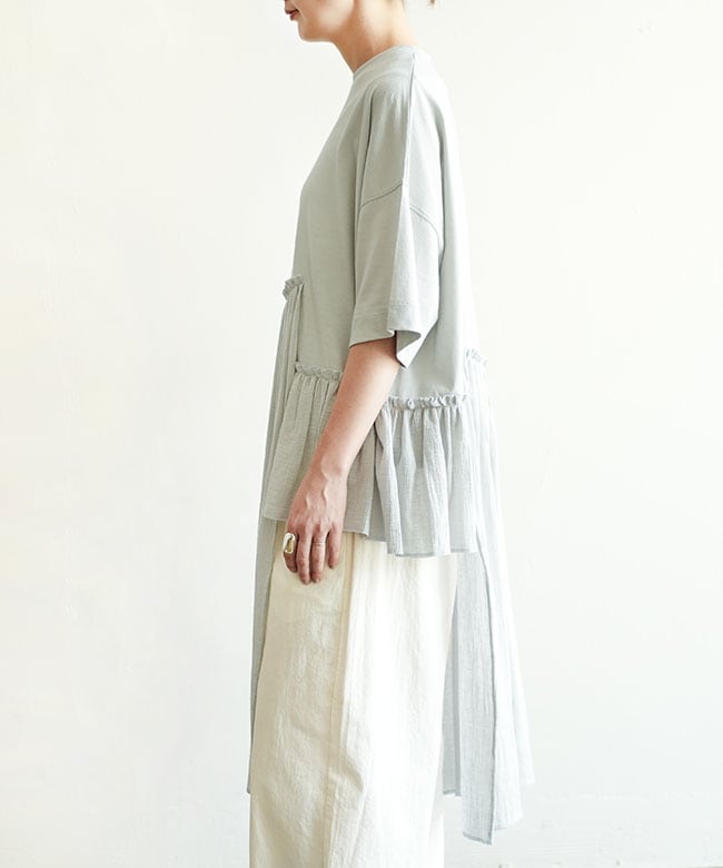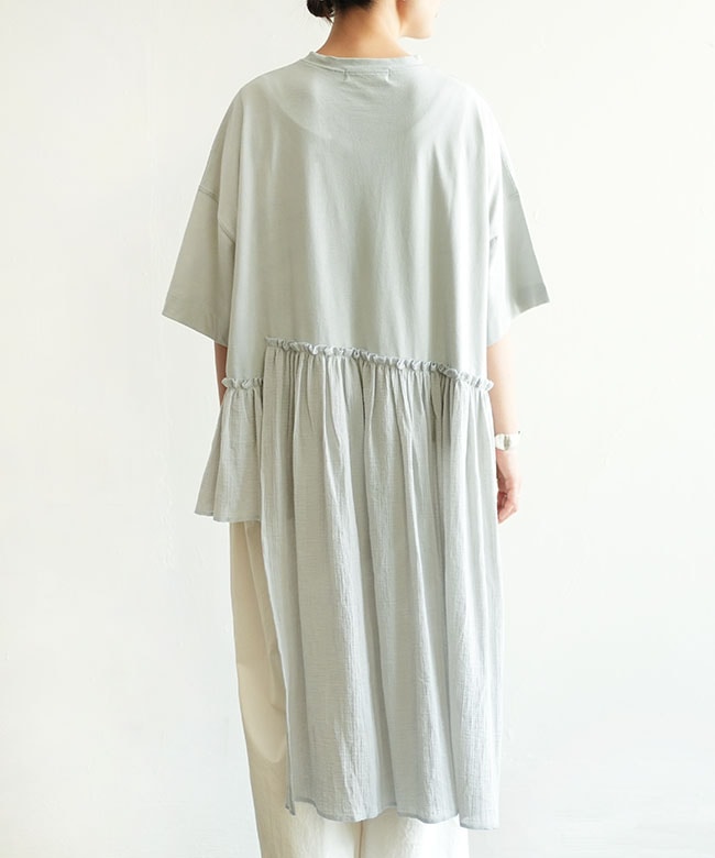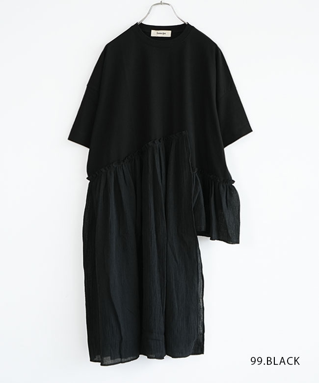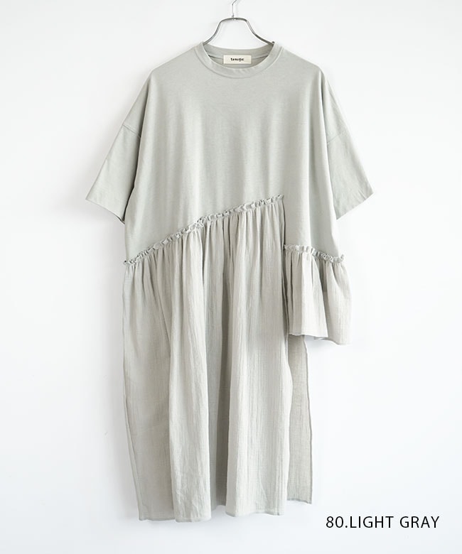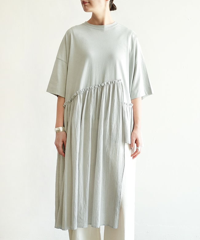 ・tumugu(ツムグ)より、コットンウェービーボイル×コットン天竺 アシメワンピースのご紹介です。