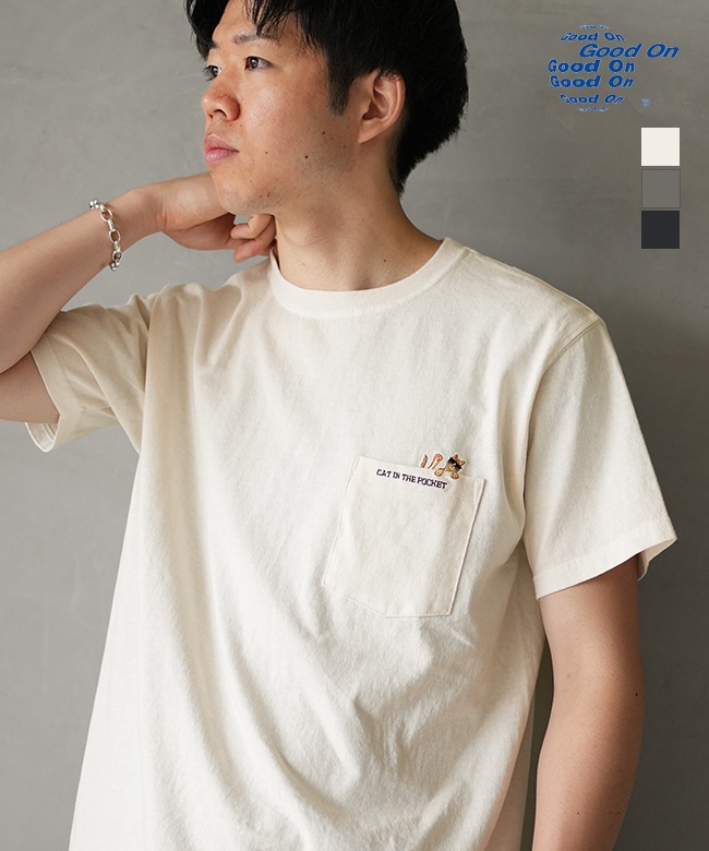 ・シンプルなポケットTシャツに刺繍のワンポイント。