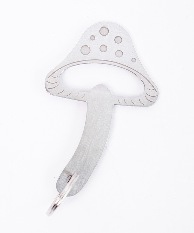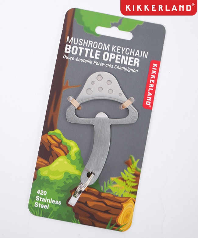 ユニークで遊び心たっぷりなキノコ型のキーチェーンが、実は便利なボトルオープナーに。