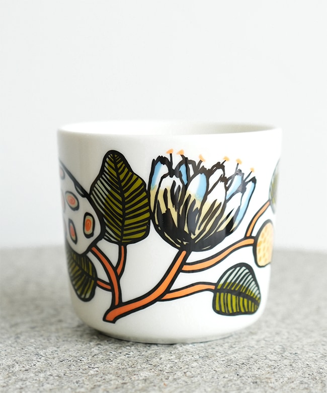 ほんのりエキゾチックなデザインがかわいい小ぶりなマグカップ。