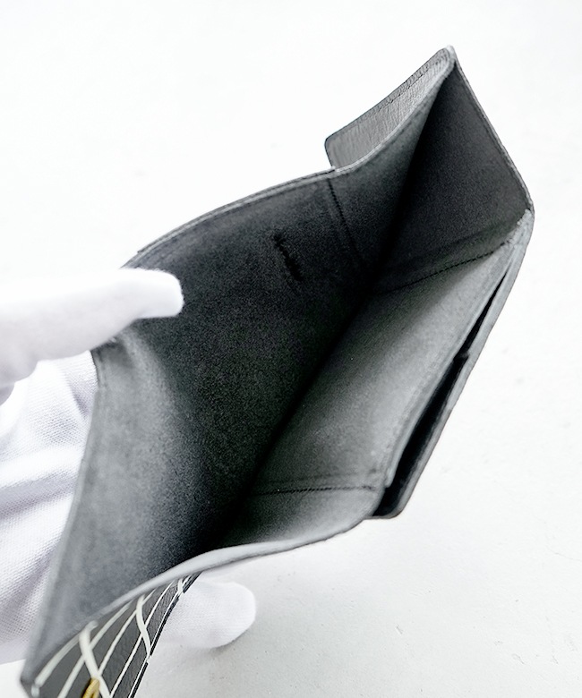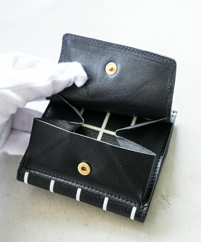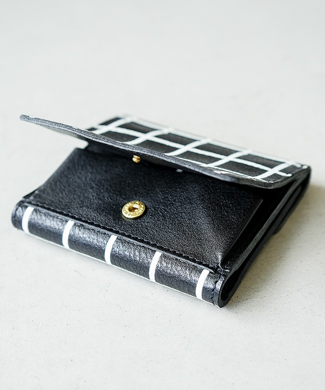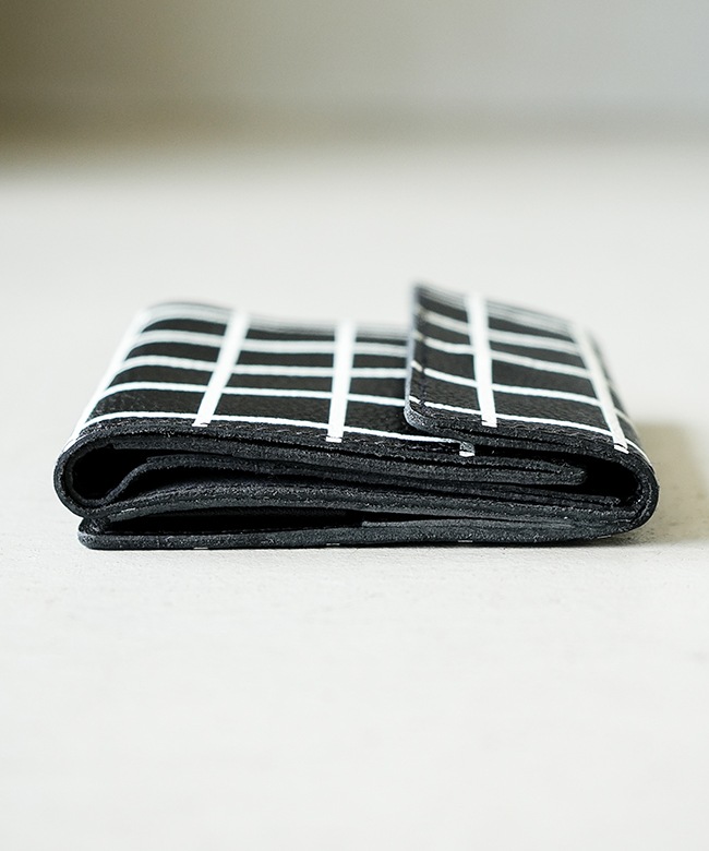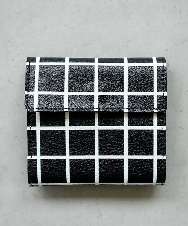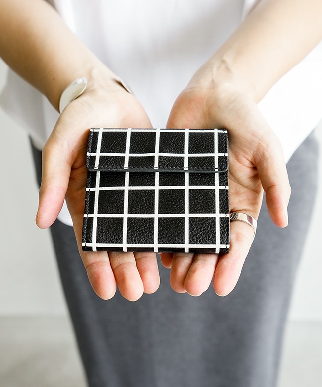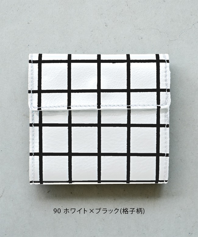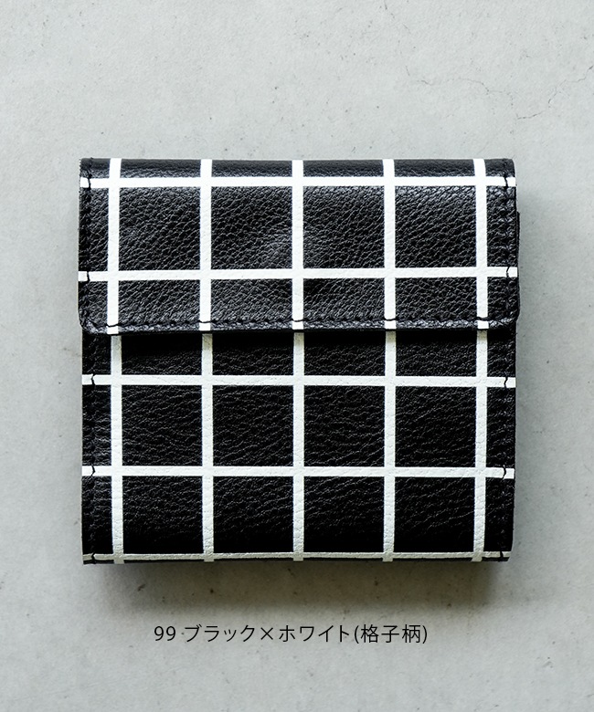 ・グラフィカルな格子柄がモダンでスタイリッシュな印象のコインパース。内側は無地とシンプルな作りです。