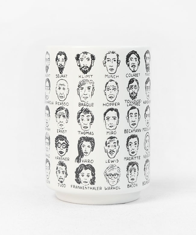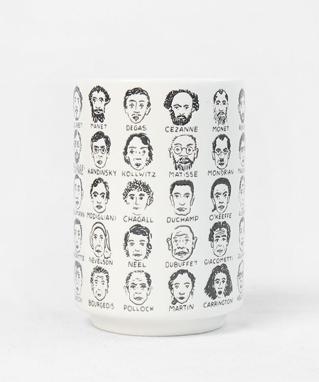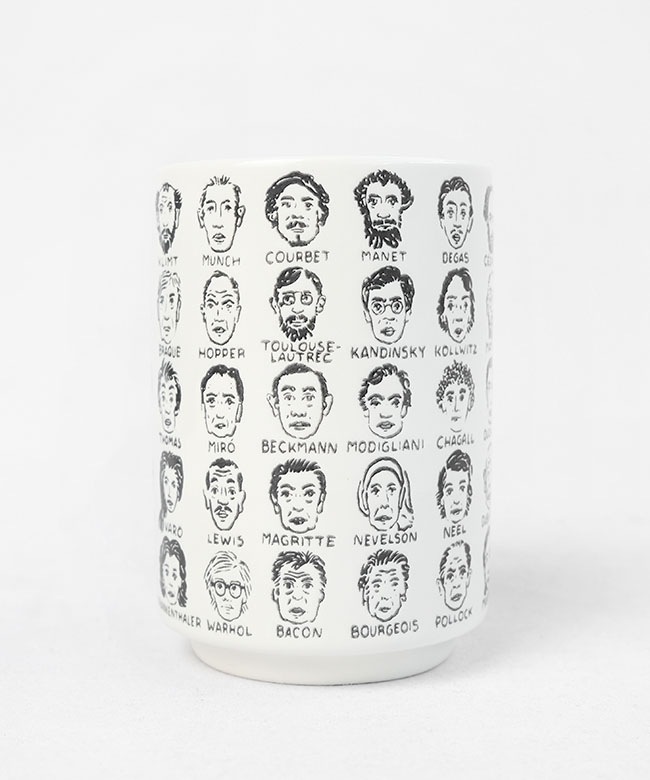 ・65人の偉大な現代芸術家をモチーフにしたオリジナルの似顔絵が型押しされています。