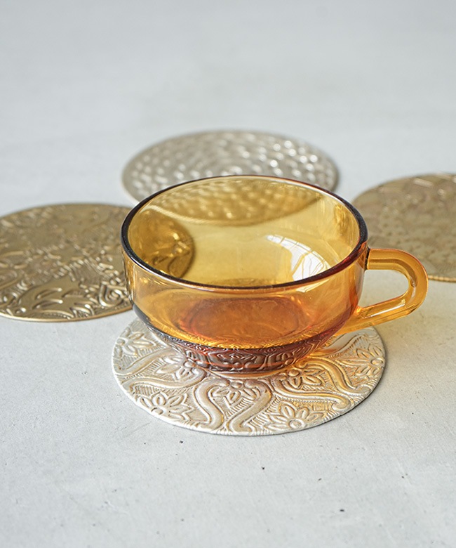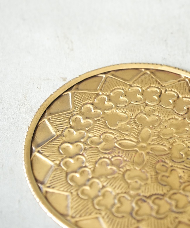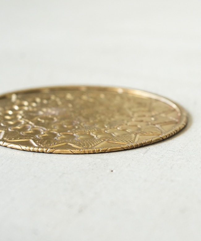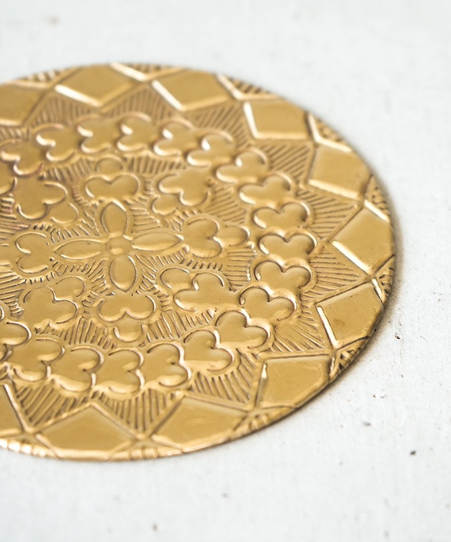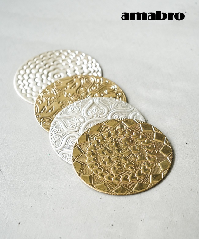 ・そんなamabroの、手作業でプレス加工された真鍮のコースター。