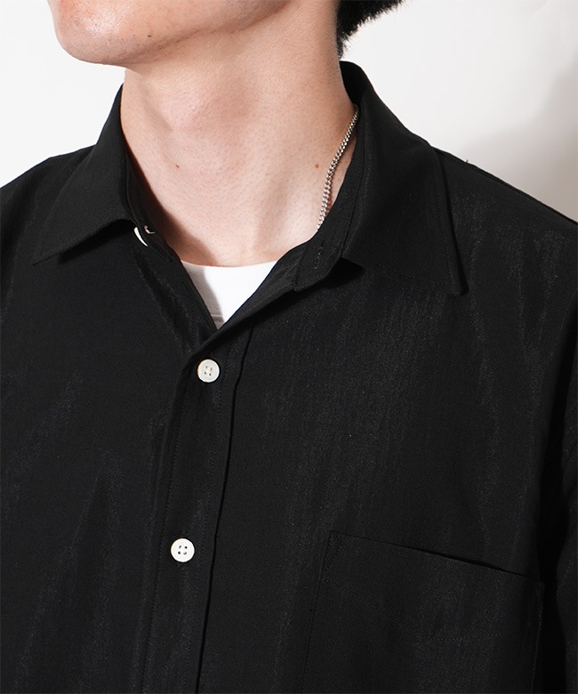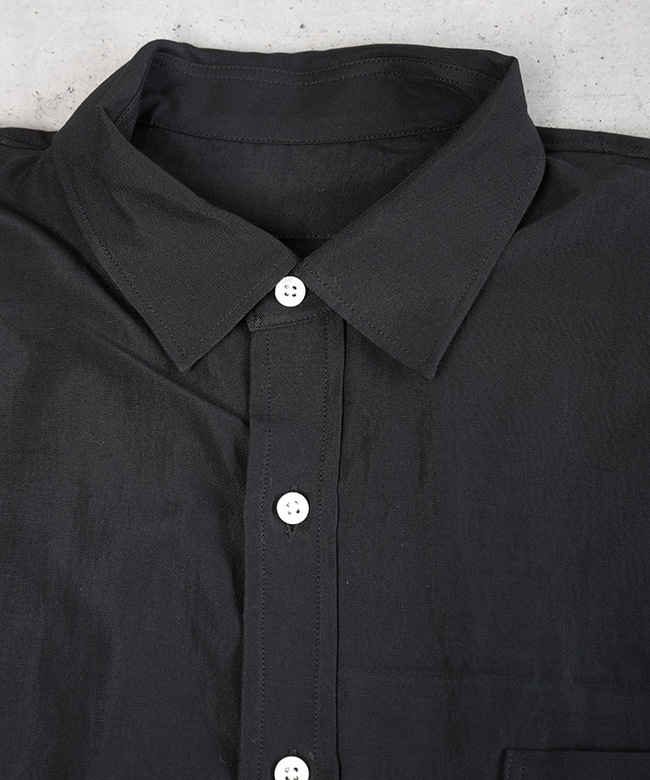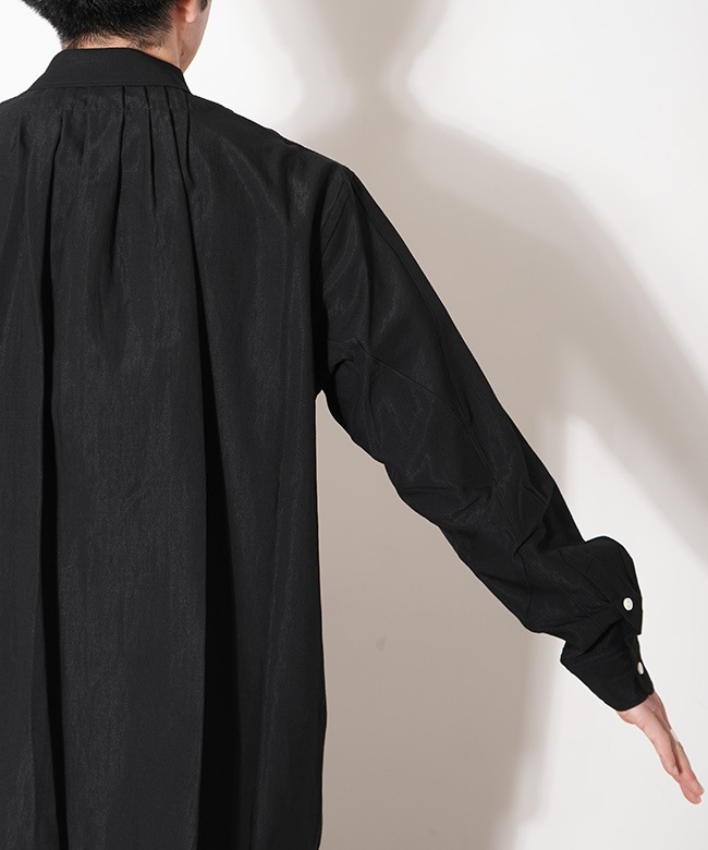 ・素材はコットンとレーヨンをかけ合わせた薄手のツイル素材。表面はレーヨンが多く現れるためツヤツヤとした光沢がありますが、肌に触れる裏面はコットンが現れるため、肌馴染みの良い着心地となっております。