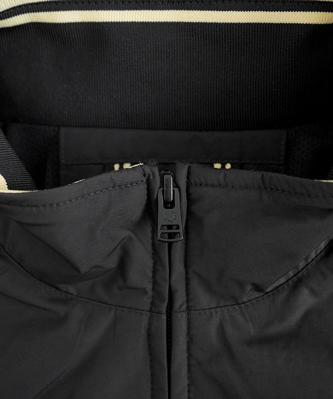・一見するとシンプルなルックスですが、ネックの内側のリブにはFRED PERRYのシグネチャーであるティップラインが施されており、前開けで羽織った際や襟を倒した際のさりげないワンポイントになります。