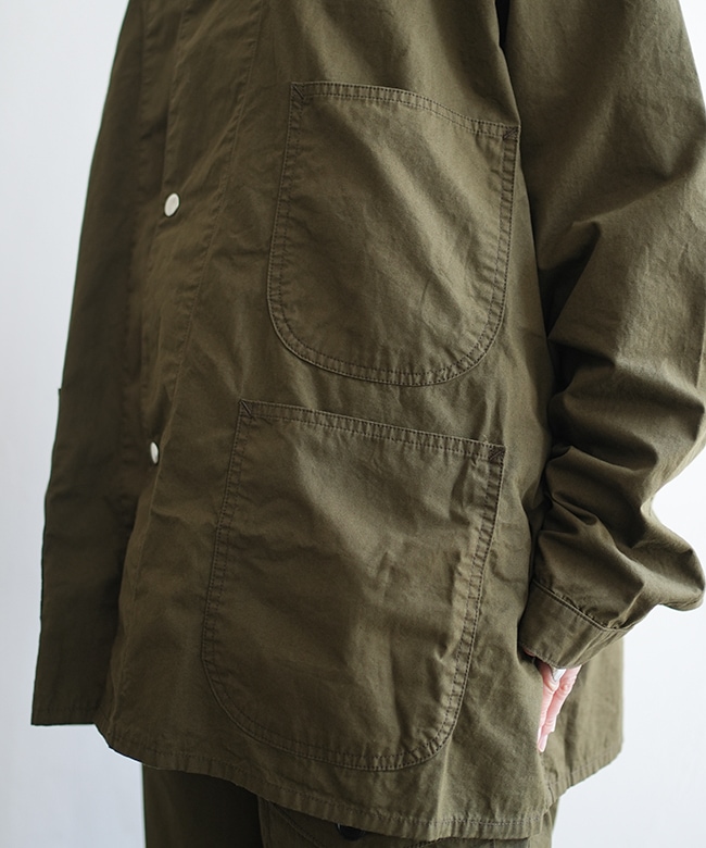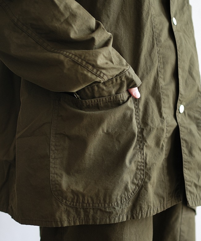 ・ゆったりとしたアームホールや身幅、スナップボタンの間隔、ポケットの形状や付け位置など、どこか間抜けで愛嬌のある雰囲気が魅力。